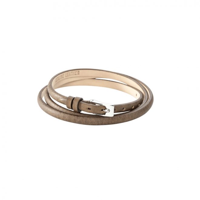 Schönes halbrundes, dreireihiges Lederarmband mit Edelstahl-Dornschließe. Armbandlänge beträgt 60 cm, damit kann man es dreimal um den Arm wickeln.