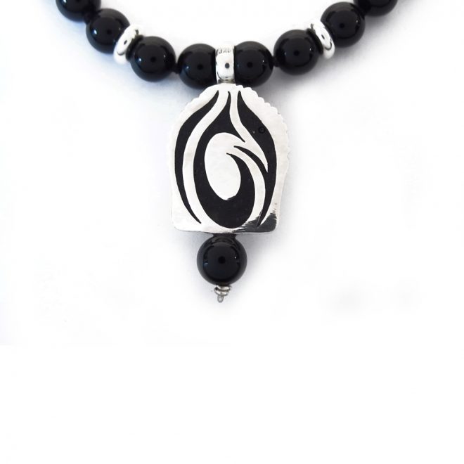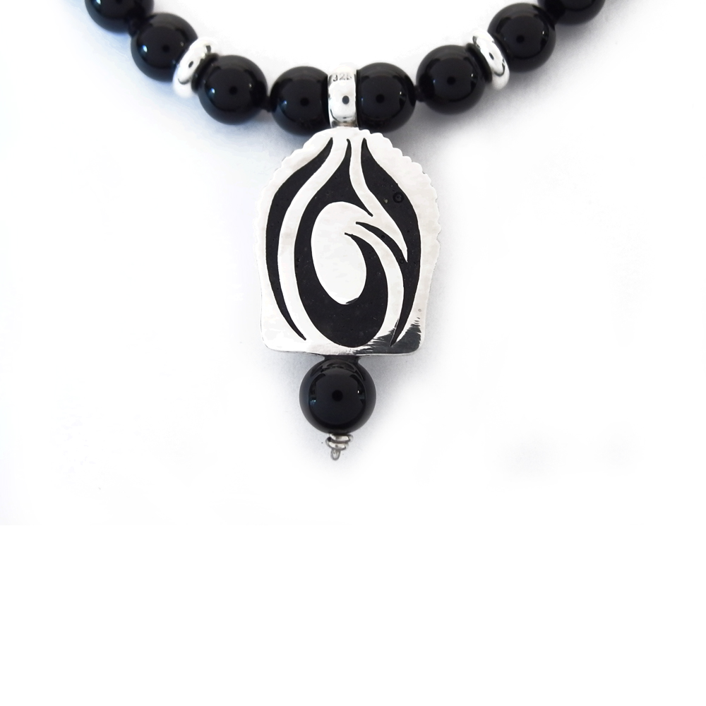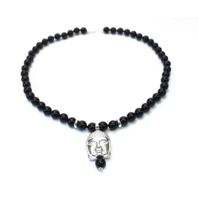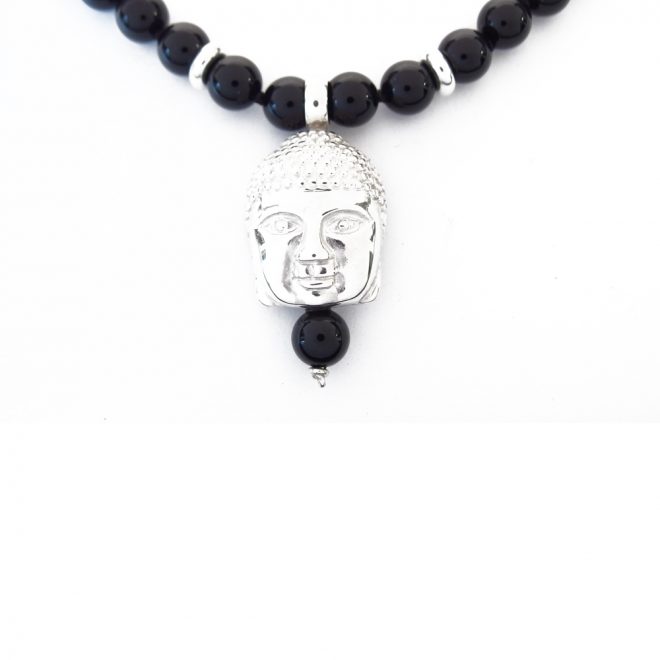 Collier „Good Karma Buddha“ Onyxkette+Anhänger 925/-Sterlingsilber