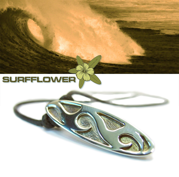 Anhänger Board „Two Waves“ 925/-Sterlingsilber, Lederband mit Endschlaufen und Karabiner