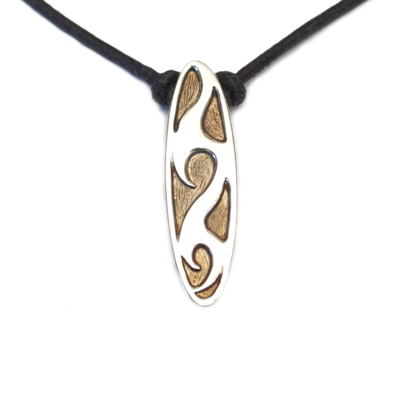 Anhänger Board „Two Waves“ 925/-Sterlingsilber, Lederband mit Endschlaufen und Karabiner (Anhänger: L 42 mm x B 12 mm x H 2,2 mm)